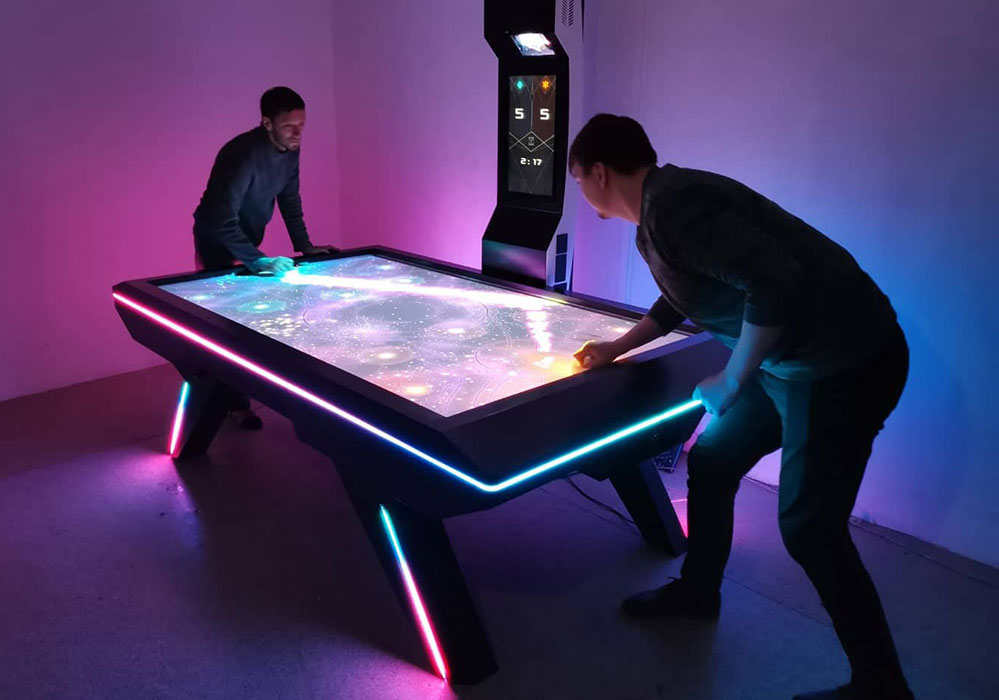 Pravi čekići i pravi disk koji klize na vazdušnom jastuku terena omogućavaju ti da u potpunosti doživiš igru klasičnog vazdušnog hokeja. Vizuelni efekti proširene stvarnosti i virtuelni elementi igre pružaju novo iskustvo igranja koje ranije nisi osetio. Igra vazdušnog hokeja postaje znatno uzbudljivija, angažovanija i kompleksnija u pogledu mehanike igre.